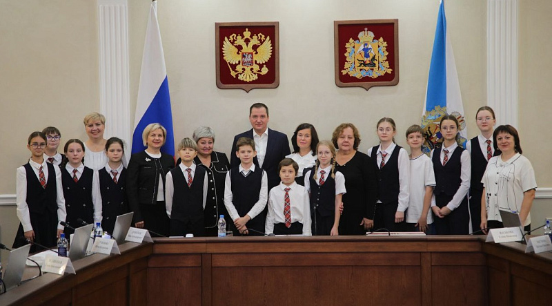 С участниками проекта «Россия глазами детей. По страницам школьных учебников», реализуемого школой Газпромбанка, встретился губернатор Архангельской области Александр Цыбульский.