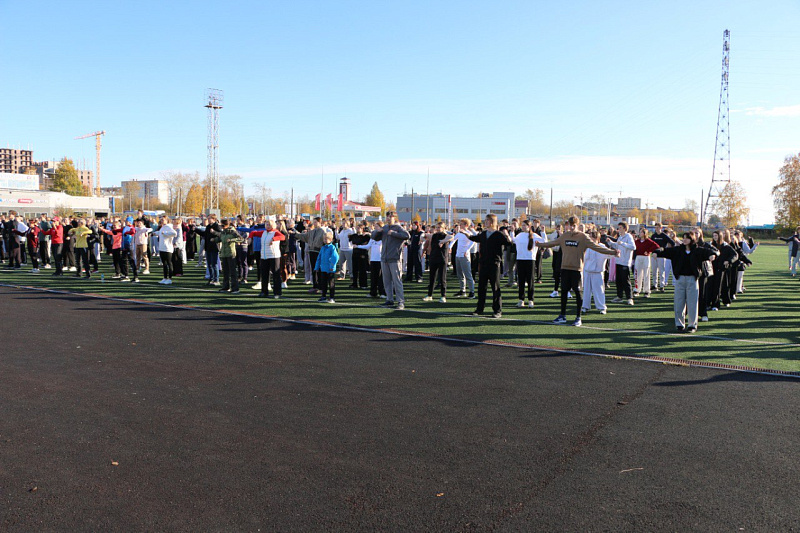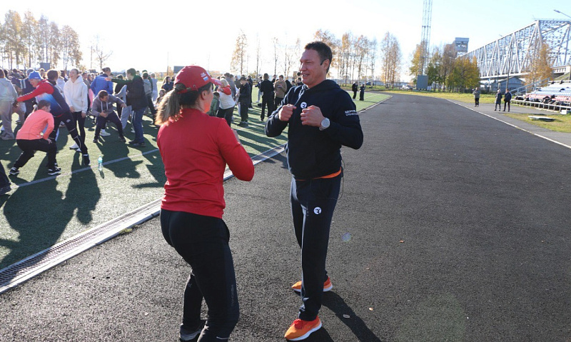 На стадионе «Буревестник» прославленный спортсмен в рамках проекта «Зарядка с чемпионом» провел тренировку для студентов САФУ и учащихся общеобразовательных учреждений.
