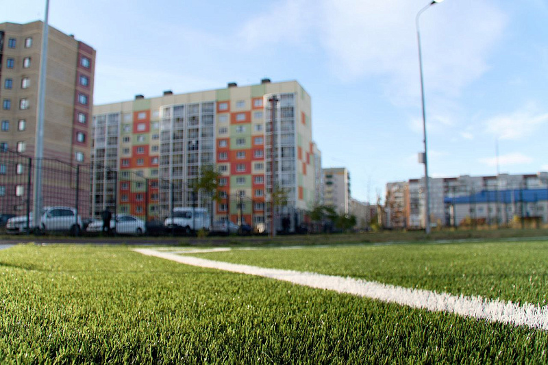 Новое футбольное поле более устойчиво к износу, чем натуральный газон, менее травмоопасно и позволит проводить мероприятия практически круглый год, независимо от погодных условий. На поле нанесена разметка, установлены ворота.