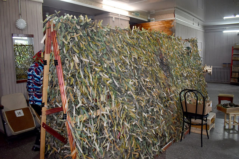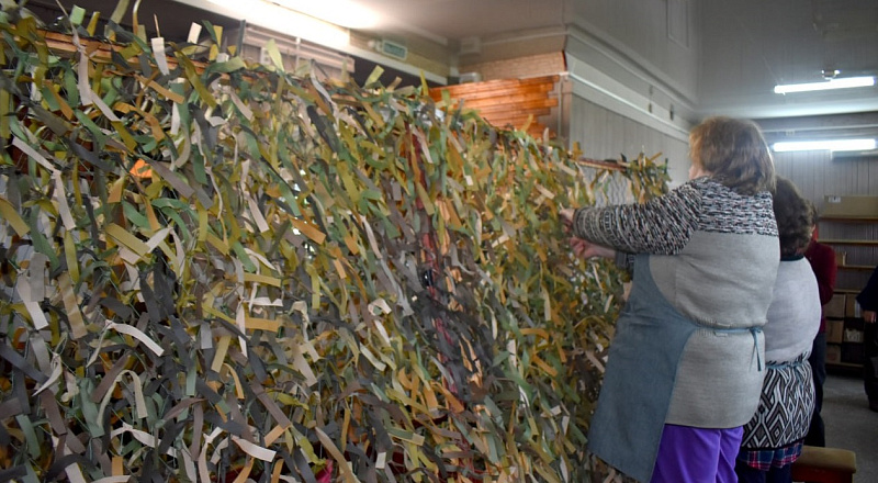 Всего в работе мастерской задействовано около 20 женщин. Помимо плетения маскировочных сетей, мастерицы вяжут теплые носки и закупают необходимые бойцам вещи, включая средства гигиены.