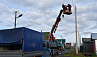 Параллельно специалисты подрядной организации выполняют монтаж светильников в местах, где опоры уже установлены.
