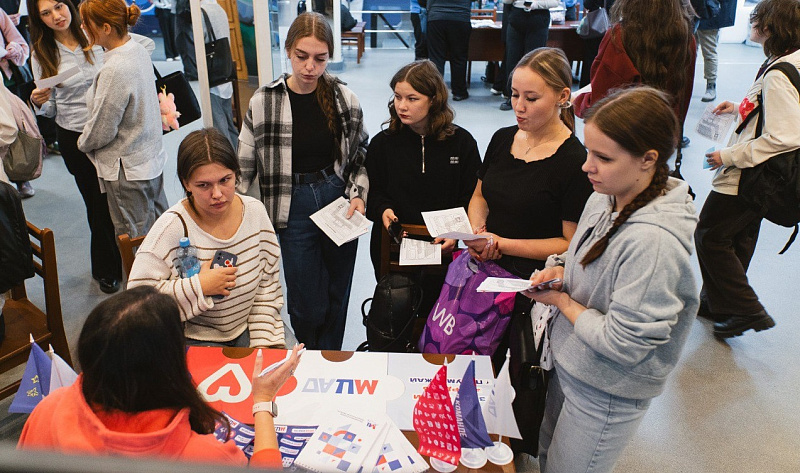 Молодежная площадка работала и на ярмарке вакансий в САФУ имени М.В. Ломоносова. Участникам рассказали о возможности пройти стажировку в органах власти в рамках программы «ГосСтарт», а также о проектах, направленных на развитие надпрофессиональных навыков и компетенций.