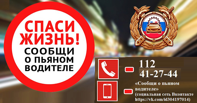 • через страницу «Сообщи о пьяном водителе» в социальной сети «ВКонтакте», указав марку машины, государственный регистрационный знак, цвет и направление движения объекта. Сообщение незамедлительно передается нарядам дорожно-патрульной службы.