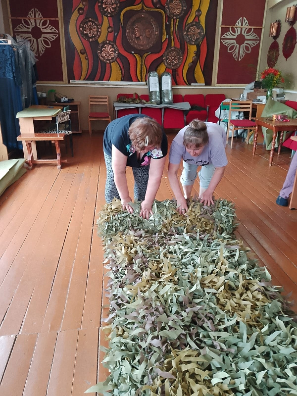 Продолжают работу по поддержке бойцов и мастера-волонтеры объединения «СВОи Устьяны». На площадке Орловского Дома культуры – структурного подразделения муниципального учреждения культуры «Устьяны» – они плетут для защитников маскировочные сети. На данный момент их усилиями изготовлено уже 440 сетей.
