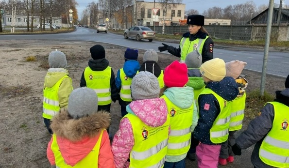 В городе корабелов одно из таких занятий провела инспектор Госавтоинспекции Северодвинска Ольга для ребят из детского сада «Сказка». Во время прогулки рядом с учреждением она объяснила детям значение дорожных знаков, напомнила о важности световозвращающих элементов, особенно сейчас, в условиях короткого светового дня, а также рассказала о правилах перехода проезжей части.