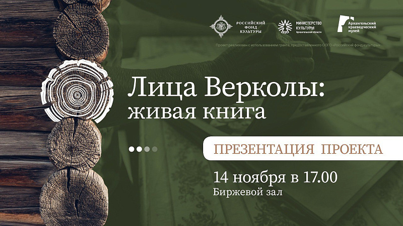 14 ноября в 17:00 в Гостиных дворах (наб. Северной Двины, 85/86) состоится презентация итогов проекта «Лица Верколы: живая книга». Проект, реализованный при поддержке Российского фонда культуры, посвящен сохранению уникальной истории деревни Верколы через личные истории её жителей.