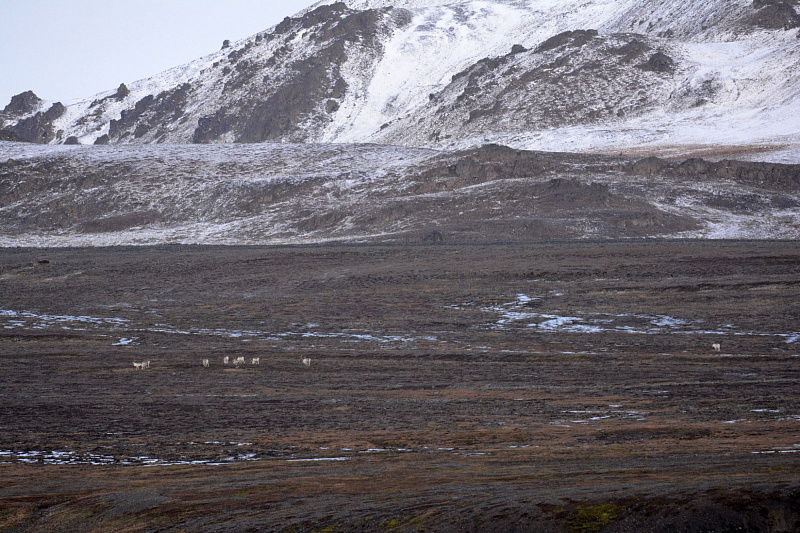 – Преодолённый на вездеходе 100-километровый маршрут позволил осмотреть растительность в этой части архипелага в местах миграций животных и зафиксировать присутствие северных оленей. Удалось провести наблюдения за 17 животными в четырёх встречах: четырьмя самцами, 12 самками и одним сеголетком, – сообщил Иван Мизин.
