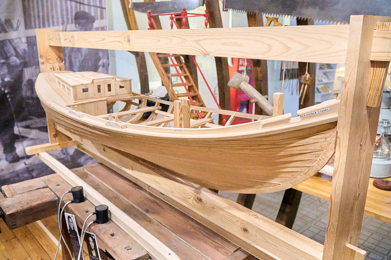 Экспозиция воссоздает историю строительства промысловых судов подростками в 1942 – 1945 годах.