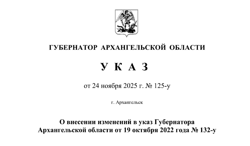 Соответствующие изменения внесены в действующий указ губернатора Архангельской области от 19 октября 2022 года №132-у.