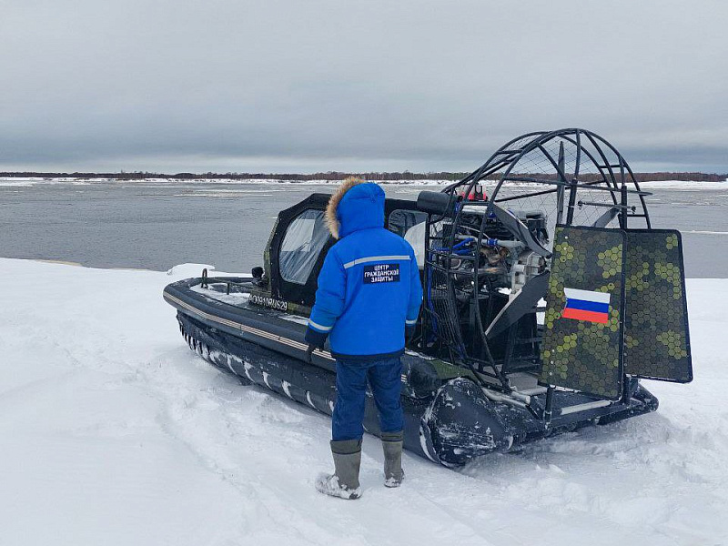 С 24 ноября спасатели на аэролодке «Север-750К long» работают на маршруте Верхняя Тойма – Приозерный. Лодка на воздушной подушке вмещает до шести пассажиров.