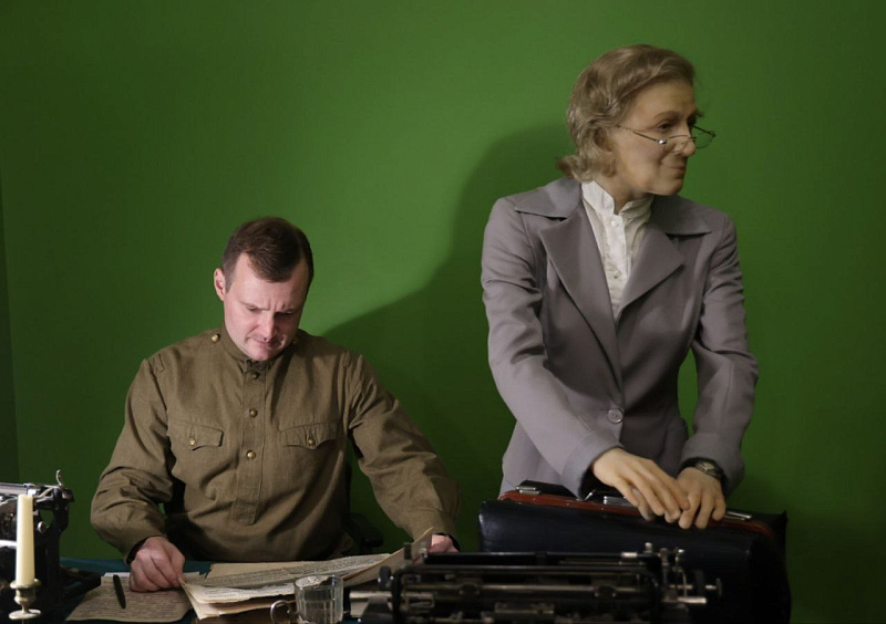В мемориальном кабинете уполномоченного Государственного Комитета Обороны жизнь как будто замерла в осени 1941-го: экспонаты здесь хранят дух ушедшего времени, все вещи подлинные, родом из прошлого тысячелетия. Например, на рабочем столе установлены оригинальный чернильный прибор, которым пользовался Иван Папанин, печатные машинки и другие атрибуты.