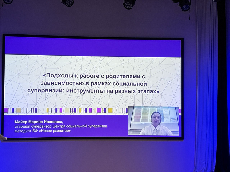 В режиме телемоста выступили федеральные эксперты – старший супервизор Центра социальной супервизии «Действуем вместе» Марина Майер и руководитель Центра обучения доказательной психотерапии Александр Панарин. Они представили данные о состоянии системы помощи зависимым в России и подходы к социальной супервизии в работе с родителями.