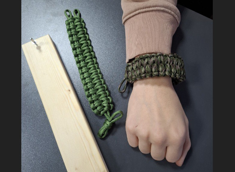 Эти изделия плетутся из крепкого шнура и способны выдержать нагрузку до 250 килограммов. С их помощью военнослужащие могут, например, починить снаряжение, закрепить груз, оказать первую помощь.