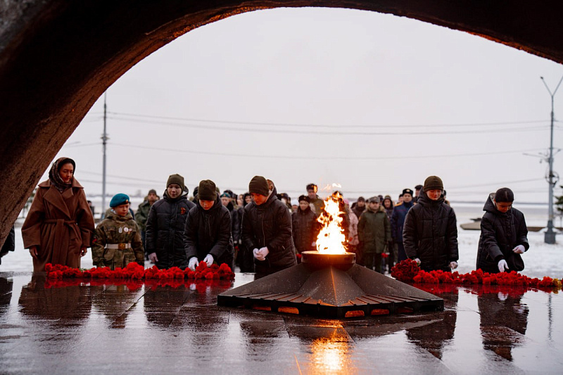 Участники митинга почтили память героев минутой молчания. Завершилась торжественная церемония возложением цветов к Вечному огню.