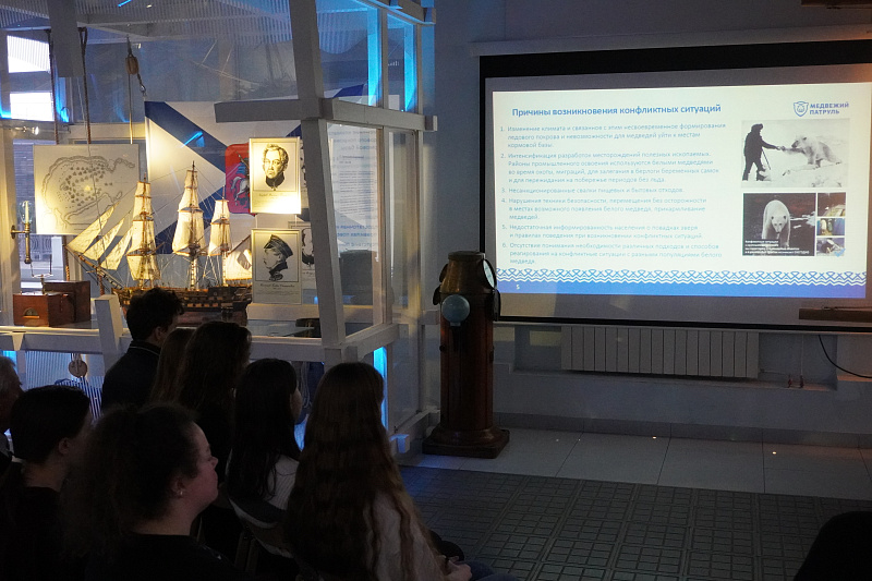 Один из семинаров состоялся в Архангельске на площадке Северного морского музея. О правилах безопасности в Арктике будущим экологам – студентам Высшей школы естественных наук и технологий САФУ рассказали специалисты АНО «Чистая Арктика».