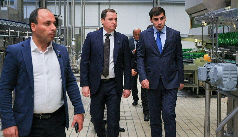 Делегация Поморья побывала также на заводе компании «Джермук групп», где производят минеральную и природную родниковую воду. Компания осуществляет добычу и розлив минеральной лечебно-столовой воды Джермук и природной воды родника Бюрег.