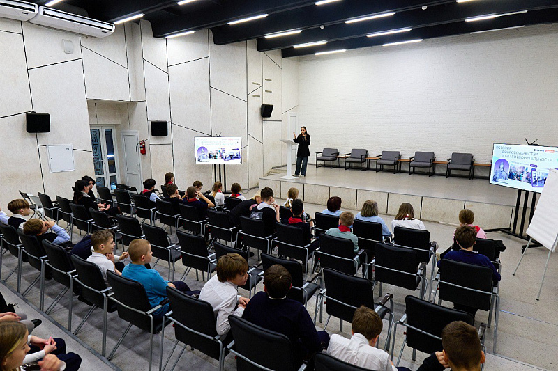 Для учеников первых-четвертых классов была подготовлена интерактивная программа, включающая просмотр и обсуждение тематического мультфильма, написание писем поддержки участникам СВО, а также экскурсию в эколабораторию, где ребята увидели полный цикл переработки пластика.