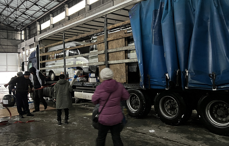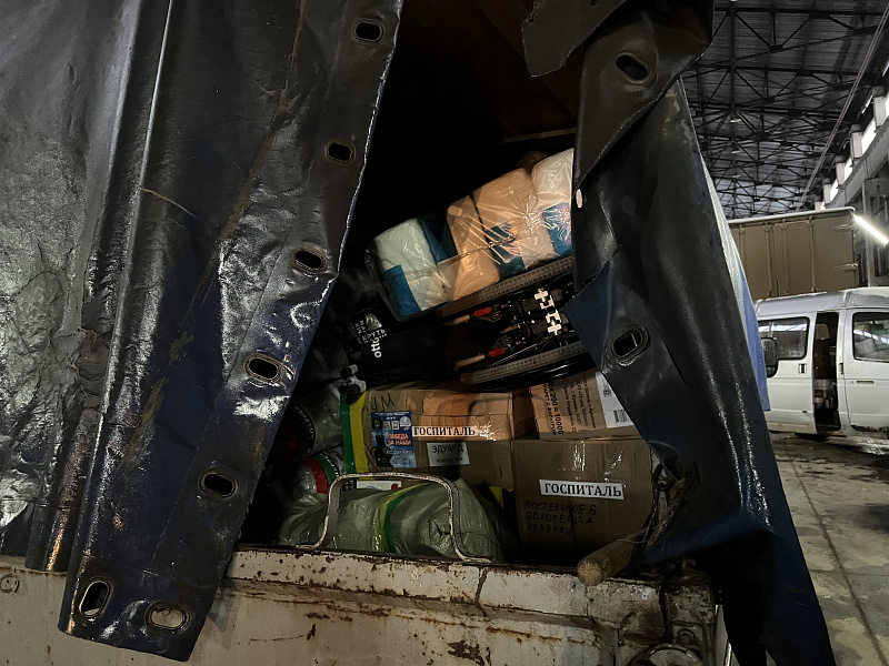 Погрузку волонтеры начали накануне. Перед ними стояла задача укомплектовать в одну фуру несколько автомобилей и тонны гуманитарного груза от неравнодушных жителей.